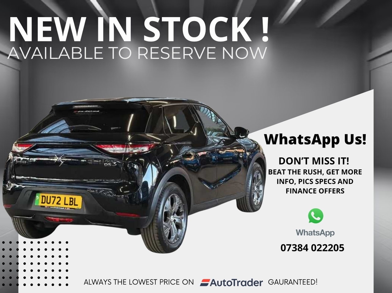 To take advantage of our leading online prices, all you need to do is reserve the car with a £250 deposit! This can be done via call on 01903 234363 or via email using the button below!